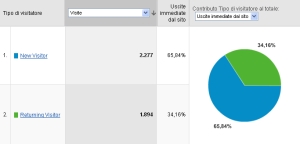 Nel corso di Web Analytics, quello che vi ho indicato è l'edizione 2008 a Verona, spiego perché visite, visitatori e visitatori unici siano un concetto senza base scientifica ed a maggior ragione, quindi, i visitatori nuovi. Nonostante ciò, una qualche indicazione i software di statistica la danno, quindi con il buonsenso del comprendere che un margine di errore c'è, alcune considerazioni vanno fatte.